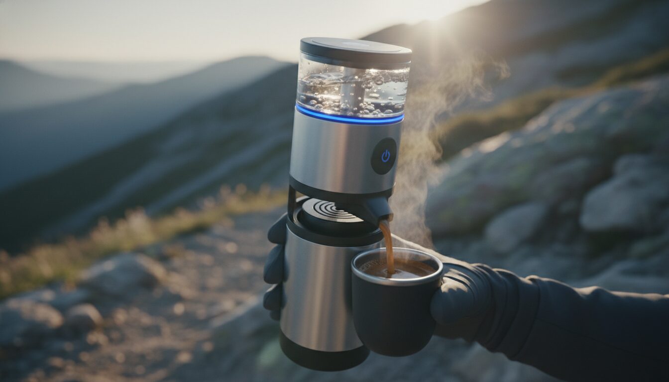 もともとWacaco Minipressoのような「手動ポンプ式」が主流だったポータブル市場に、「水から加温まで全部やる」電動モデルとして登場し、アウトドア界隈で話題になった機種でもあります。ターゲットはキャンパーや車中泊ユーザーで、家庭キッチンよりも「外で使うこと」を最優先に設計されているのが特徴です。
